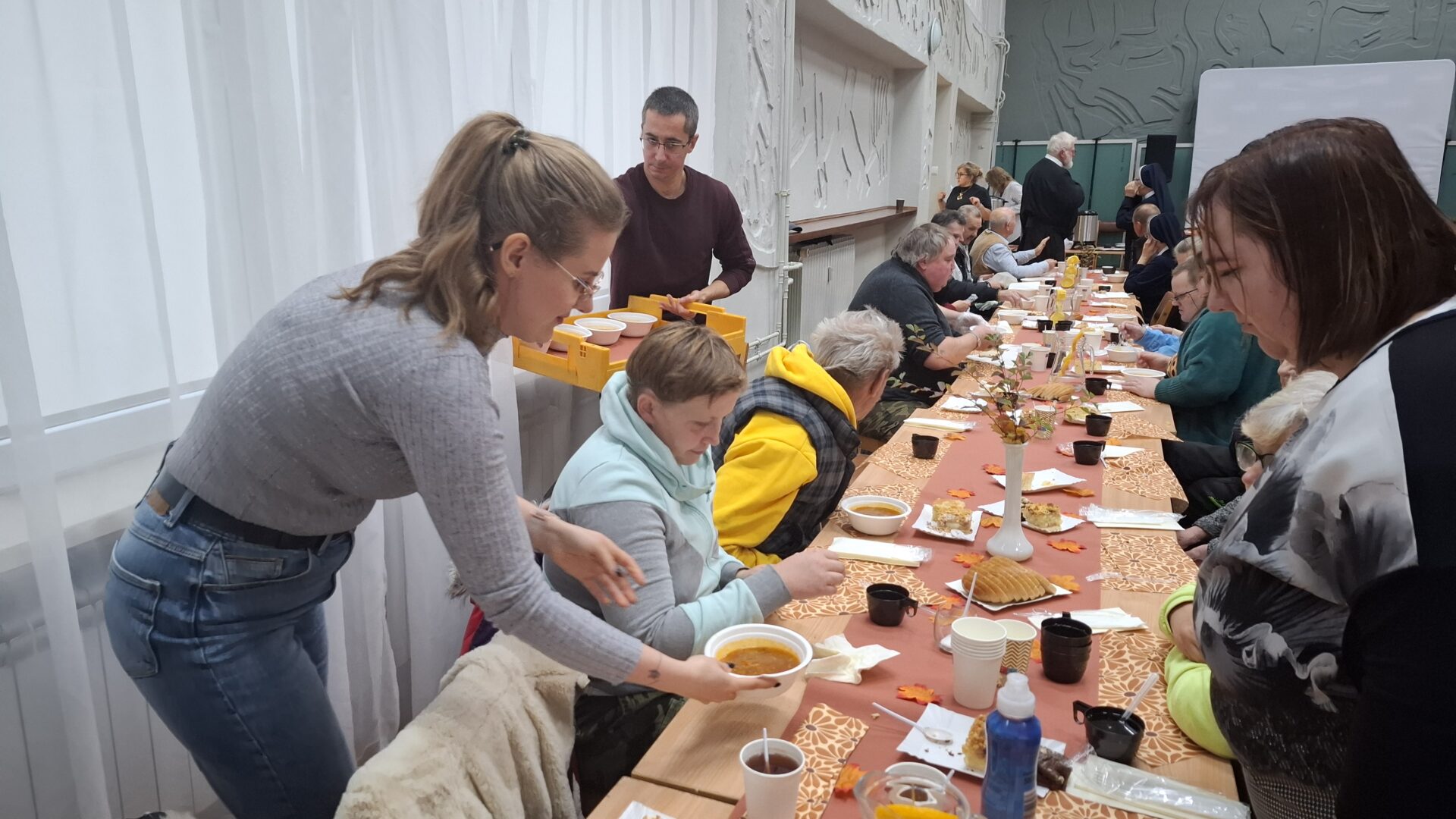 – To spotkanie to wspaniała rzecz. Tu można pogadać, zwierzyć się. Człowiek człowieka wysłucha i doradzi. Chwała temu, kto to wymyślił- mówił jeden z uczestników. Inna kobieta dodała z prostą wdzięcznością: –Jestem tu pierwszy raz. Pyszna zupa, gołąbki, ciasto… ale najważniejsze, że ktoś nas tu chce.