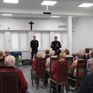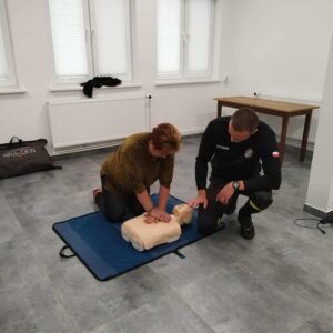 Drugiego dnia strażacy z OSP Szwecja poprowadzili praktyczne szkolenie z zakresu udzielania pierwszej pomocy oraz bezpieczeństwa w sytuacjach zagrożenia konfliktami zbrojnymi.